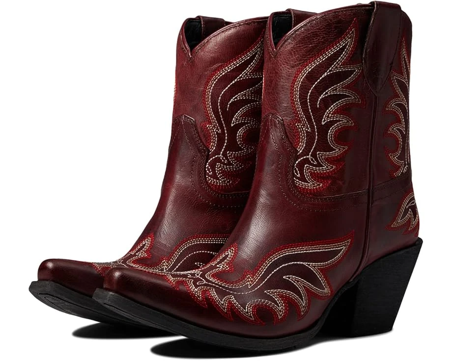Sport a retro look by wearing the stylish and comfortable Ariat® Chandler Western Boots, featuring classic western stitch. SKU: #9611896Full-grain leather upper. Man-made lining and insole. Single stitch welt construction. V-shaped dip. Pointed square toe and block heel. Five-row stitch pattern.Pull tabs for easy wear and removal. Eye-catching western stitching on the upper. Duratread™man-made outsole with high traction and durability. Imported. Product measurements were taken using size 9, width B – Medium. Please note that measurements may vary by size.Measurements: