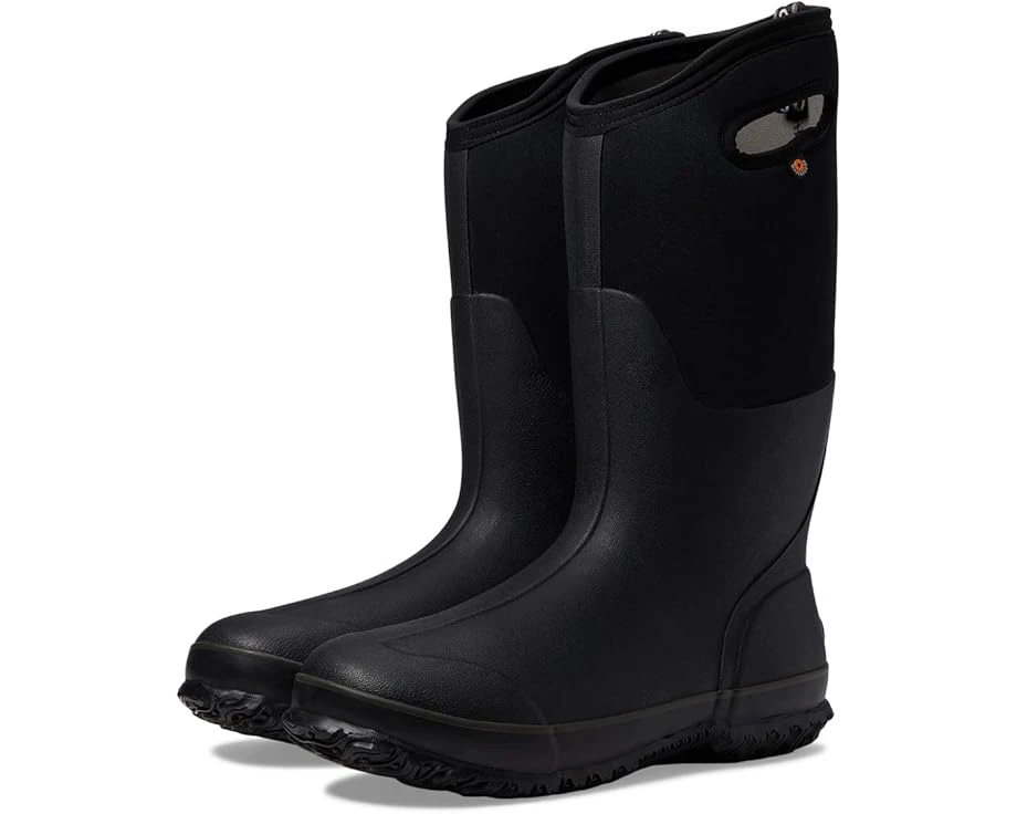 Puddles mean nothing when you’re wearing the Bogs® Classic High Handles rain boots.SKU: #7811961100% waterproof.7mm waterproof Neo-Tech™ insulation offers a warm, comfortable foot environment. Durable, natural, hand-lasted rubber upper.Four-way stretch inner bootie doubles as the shaft.Interior features DuraFresh bio-technology that activates to fight unwanted odors.Built-in handles for easier on/off.Self-cleaning, non-marking, non-slip rubber outsole offers the traction needed for wet conditions.Comfort rated from temperate to -40°F or sub-zero conditions.100% vegan.Product measurements were taken using size 8, width B – Medium. Please note that measurements may vary by size.Weight of footwear is based on a single item, not a pair.Measurements: