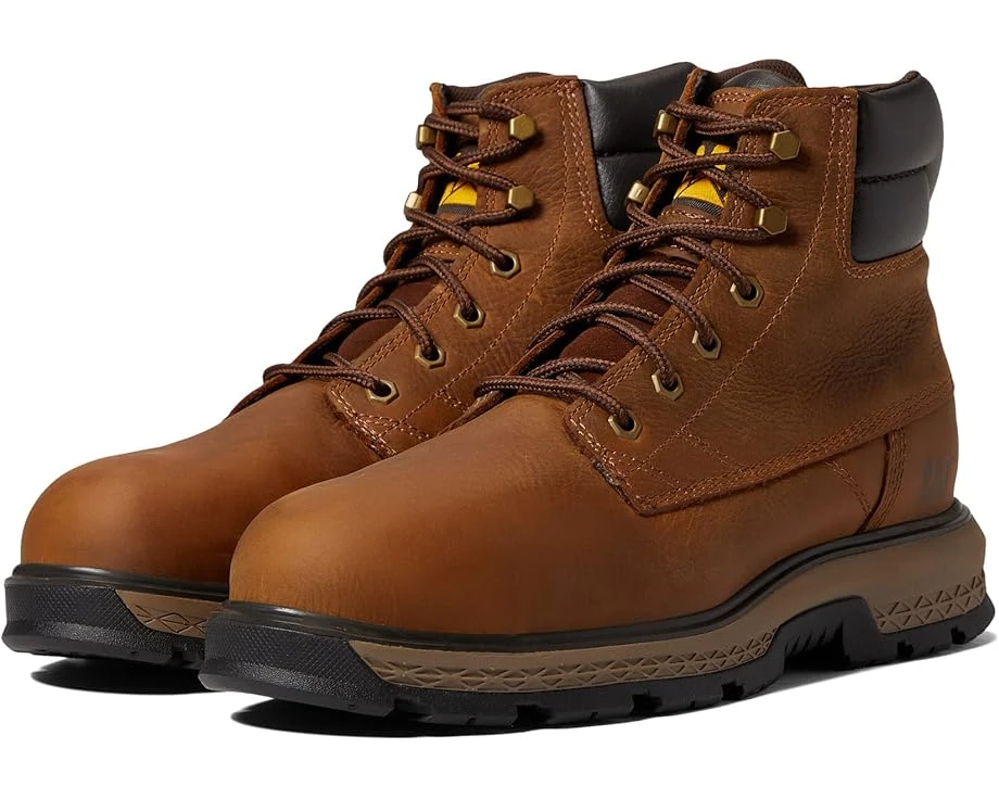 Gear up for your outdoor adventure trips or an action-packed day in true style and comfort in the Caterpillar® Exposition 6″ AT Work Boots.SKU: #9607854Alloy Toe tested by Intertek and meets ASTM F2412 Impact and Compression, ASTM F2413 EH (Electrical Hazard) safety standards.Durable and slip-resistant rubber outsole meets ASTM F1677-2005 MARK II and SATRA Non-Slip Testing Standards.Full grain leather upper.Removable footbed.Soft and breathable nylon mesh lining.LEAP technology in footbed for tough comfort and protection from injuries.ReVive engineered comfort technology in midsole for enhanced cushioning and arch support.Traditional lace-up construction for an adjustable and secure fit.Round toe.Imported.Product measurements were taken using size 9.5, width D – Medium. Please note that measurements may vary by size.Weight of footwear is based on a single item, not a pair.Measurements: