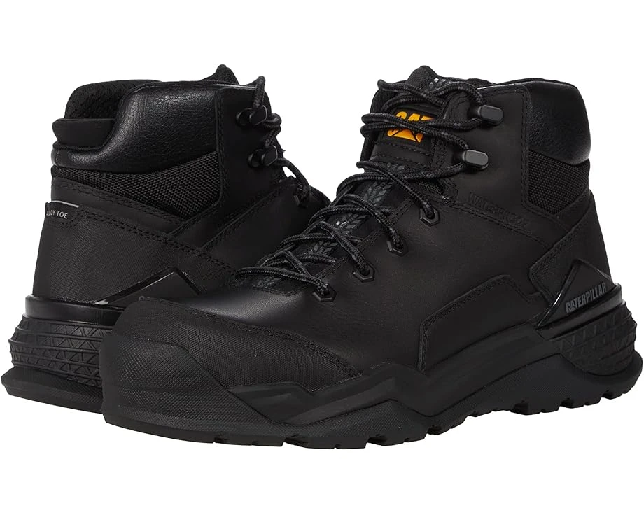 The Caterpillar® Provoke Waterproof Alloy Toe work shoes have a comfortable and flexible leather construction and a reliable slip-resistant outsole so you stay safe from slipping during your shift.SKU: #9542836Lace-up work shoe with a lightweight alloy safety toe that meets ASTM F2413-18/ASTM F2412 C/75 I/75, EH (electrical hazard) safety standards.Full lace up construction.Mid length boot for ankle protection.Innovative midsole offering LEAP Technology that provides all-day comfort, durability, faster rebound, and flexible cushioning.