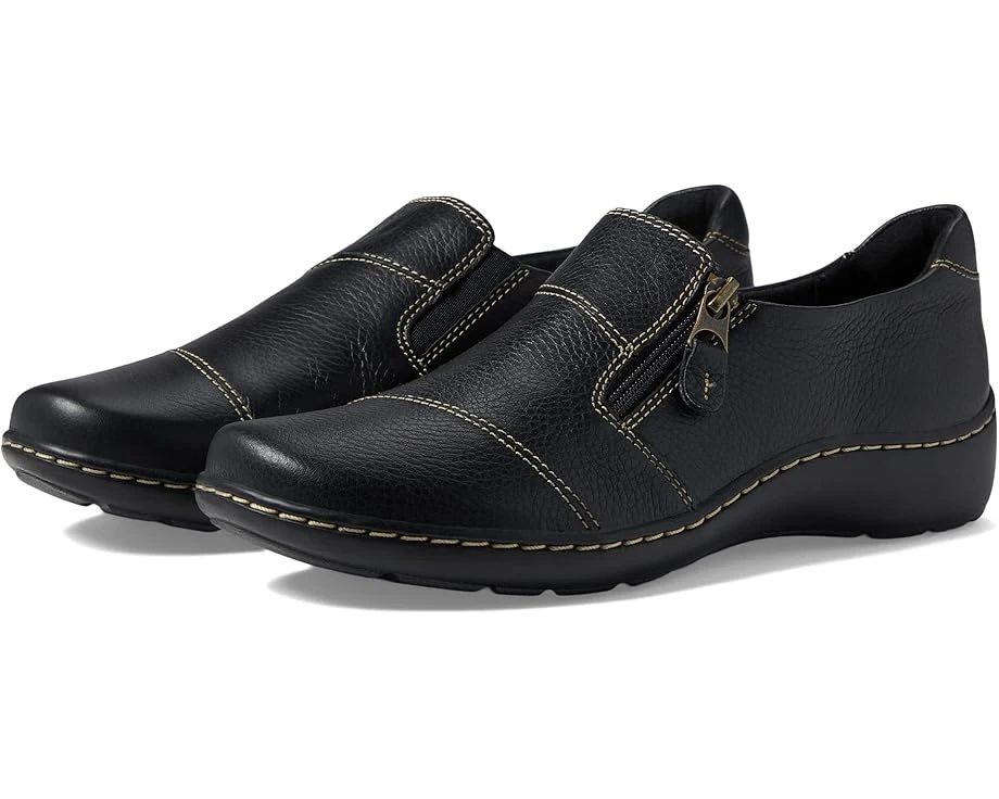 Showcasing a premium classic profile, the Clarks™ Cora Harbor Oxfords offer you the perfect fusion of style and comfort.SKU: #9779319Leather upper.Breathable textile lining.Molded PU footbed offers the ultimate cushioning comfort and arch support.Slip-on style with zippered closure for easy on and off.Round toe silhouette.Lightweight, grippy, and flexible TPR outsole.Imported.Product measurements were taken using size 11, width D – Wide. Please note that measurements may vary by size.Measurements: