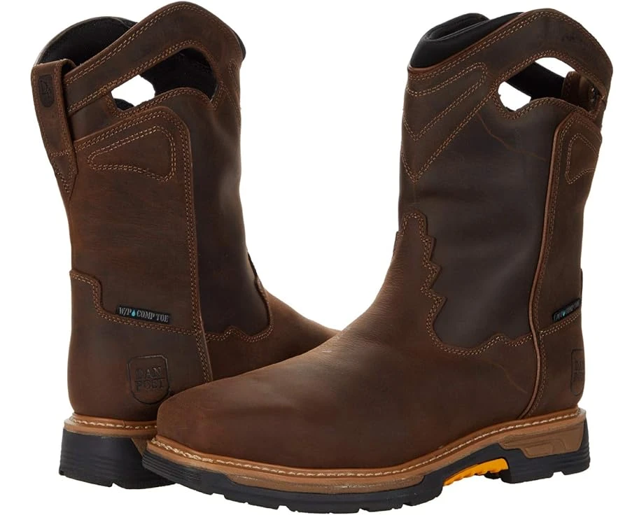 Strut in style and confidence when you’re wearing Dan Post® Thunderhead – Composite Toe boots!SKU: #9469741Composite toe meets ASTM F2413-11 I/75 C/75 STD and EH (Electrical Hazard).Waterproof bootie construction.Leather upper.Square-toe silhouette.Pull-on loops construction.Low walking heel.Removable anti-bacterial and anti-fungal textile lining and ortholite insert.Lining, insole, and outsole made of man-made material.Oil and heat resistant rubber outsole.Imported.Product measurements were taken using size 9, width D – Medium. Please note that measurements may vary by size.Weight of footwear is based on a single item, not a pair.Measurements: