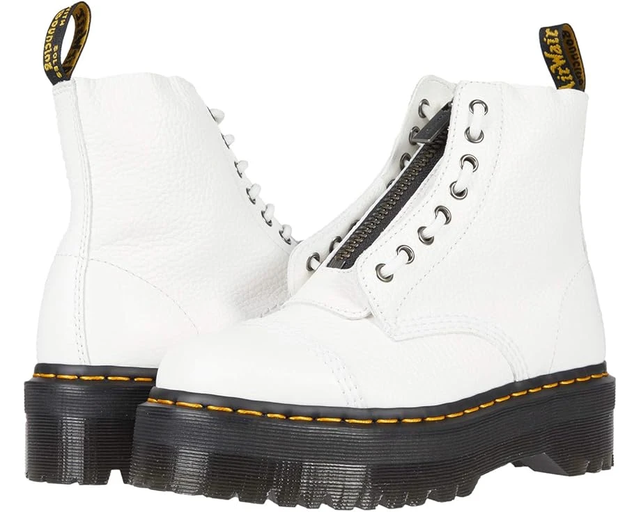 The Dr. Martens® Sinclair Platform boots take the military-style jungle boot and updates it to a modern urban boot for everyday wear. SKU: #9398612Upper made of either Patent Lamper Croc Emboss leather or Aunt Sally leather. (Leather type stated with color name.)Front zipper closure that includes an eight-eyelet lace-up design for optional wear. Retains classic Docs DNA including visible stitching, grooved sides, and a scripted heel-loop.Goodyear® welt construction heat seals and sews together the upper and sole for long-lasting durability. Soft leather lining.Cushioned leather footbed for all-day comfort.Quad platform sole.Air-cushioned Airwair™ rubber outsole is slip-resistant with a high degree of oil, fat, petrol, alkali, and abrasion resistance and has first-class energy absorbing qualities in the heel strike area.Imported.Product measurements were taken using size UK 6 (US Women’s 8), width M. Please note that measurements may vary by size.Weight of footwear is based on a single item, not a pair.Measurements: