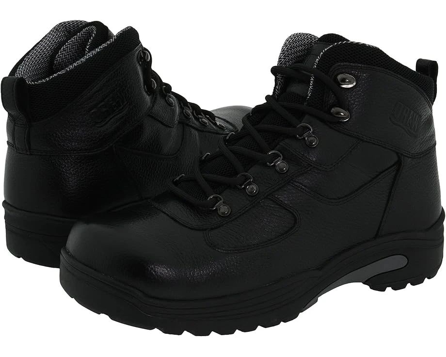 Click here to explore DREW styles that are right for your ailments SKU: #7576003The Drew® Rockford Waterproof Boot is handsome and durable and ready for the weekend! Waterproof nubuck or tumbled leather for a stylish and protective exterior.Dupont Thermolite® lining helps keep the foot warm and dry.Built-in heel cushion offers additional support and comfort.Plus Fitting System® – two removable footbeds supply added and double depth.Additional removable and moldable EVA insert allows for adjustability.Accommodates prescribed orthotics.Tempered steel shank creates additional stability.Slip-resistant, oil-resistant, and non-marking rubber outsole works to maintain surface contact.Imported.Product measurements were taken using size 9, width M (D). Please note that measurements may vary by size.Measurements: