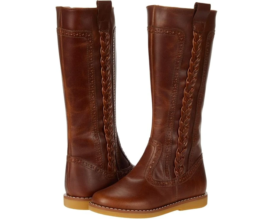 Leather Elephantito® knee-high boots with braided accent down the shaft and contrast color stitching at the midsole.SKU: #9429248Inside zipper and pull-tab at the shaft for easy on-and-off.Round-toe silhouette. Leather lining and insole.Synthetic block heel and outsole. Made in Peru.Product measurements were taken using size 10 Toddler, width M. Please note that measurements may vary by size.Measurements: