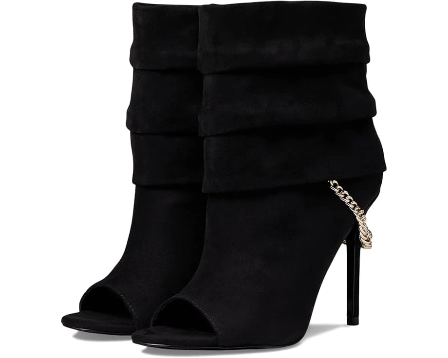 Make a stylish statement by wearing the classy GUESS® Adilee Boots.SKU: #9830707Faux suede upper.Man-made lining and insole.Pleated ankle design.Accentuated with goldtone chain.Pull-on style.Peep, round toe silhouette.Stiletto heel style.Man-made outsole.Imported.Product measurements were taken using size 8.5, width M. Please note that measurements may vary by size.Weight of footwear is based on a single item, not a pair.Measurements: