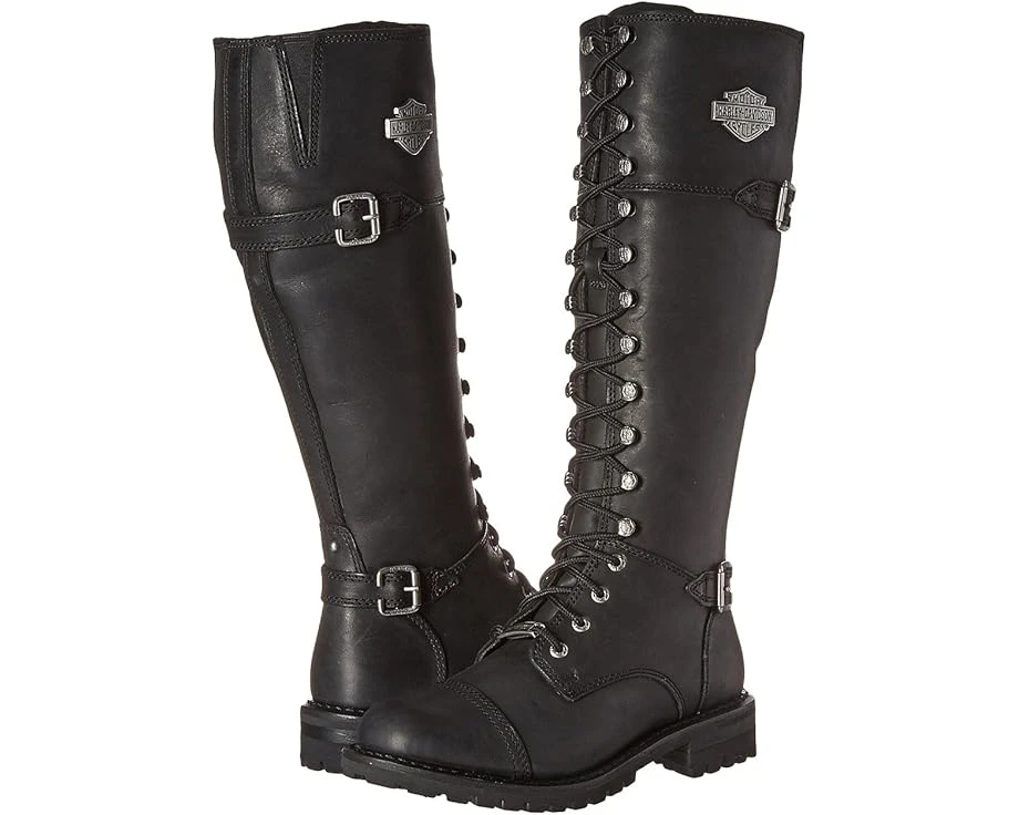 The Harley-Davidson® Beechwood riding boot has a stylish edge that is ready for the road!SKU: #8736234Part of the Harley-Davidson Riding Collection that is “Built for the Road.”Full grain leather upper.Traditional lace-up design with sturdy metal eyelets and speed lace hooks. YKK® locking inside zipper for easy on and off. Goodyear® welt construction for added durability. Breathable mesh lining. Full length cushion sock lining provides added underfoot comfort. Durable rubber outsole with lug pattern for excellent traction. Imported.Product measurements were taken using size 8, width B – Medium. Please note that measurements may vary by size.Weight of footwear is based on a single item, not a pair.Measurements:
