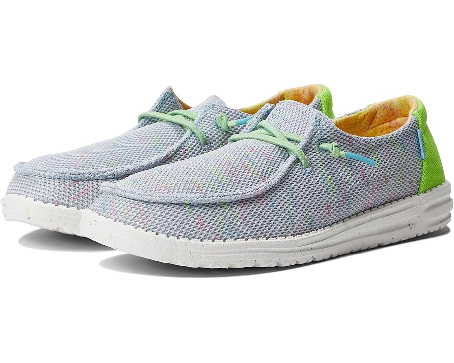 Ace the semi-formal style by wearing the Hey Dude® Wendy Sox Loafers. SKU: #9623668Stretch-polyester blend upper with contrasting heel detail.Contrasting, stretch-cotton lining.Ergonomic, leather-lined, removable memory-foam insole for superior cushioning. Stretchable cotton lining. Flex & fold technology.Bi-component stretch-knit upper.Classic moc toe. Slip-on style loafers with elasticized laces. Ultralight synthetic outsole with high traction and durability. Imported. Product measurements were taken using size 10, width M. Please note that measurements may vary by size.Weight of footwear is based on a single item, not a pair.Measurements: