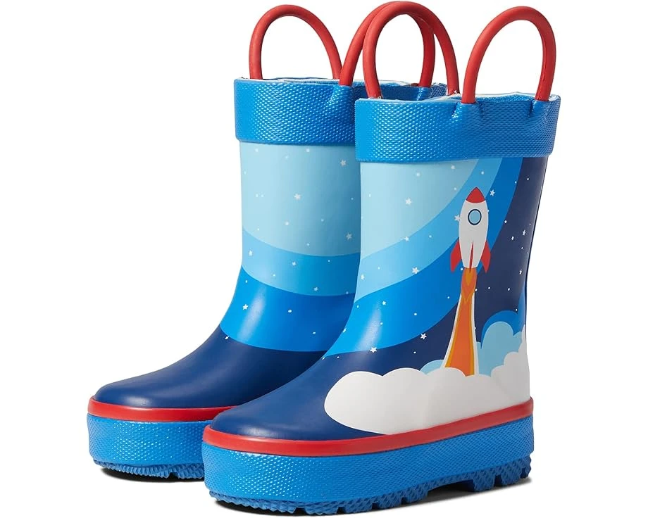 Enjoy the weather with your little one by dressing them in the Kamik® Kids Rocketship Boots. SKU: #9613477Synthetic upper. Textile lining and insole. Removable EVA footbed for cushioning and comfort.100% waterproof, PVC-free, vulcanized rubber rainboots.NiteRays reflective technology.Pull-on style. Allover eye-catching print featuring a rocketship. Pull loops for easy wear and removal. Signature brand name print on the heel. Round toes and lug platform heel. PUDDLE vulcanized rubber outsole with high traction and durability.Imported. Product measurements were taken using size 3 Infant, width M. Please note that measurements may vary by size.Measurements: