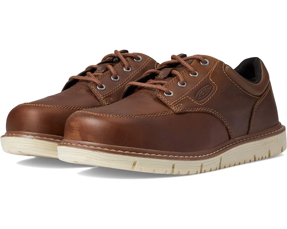 The KEEN® Utility San Jose Oxford Soft Toe shoes are a great pick for everyday outing. SKU: #9737083Left and right asymmetrical KEEN.PROTECT soft toes that meet ASTM F2892-18 EH (Electrical Hazard) standards help safeguard against minor impact, but not reinforced with a secondary crush resistance.Full grain leather upper. Mesh & moisture-wicking textile lining.Lace-up closure. Metal eyelets. Injected PU midsole. Removable metatomical PU footbed.Slip-resistant rubber outsole meets ASTM F2913-19 SATRA and ASTM F1677-96 Mark II Non-Slip testing standards.Imported. Weight of footwear is based on a single item, not a pair.Product measurements were taken using size 8.5, width D – Medium. Please note that measurements may vary by size.Measurements: