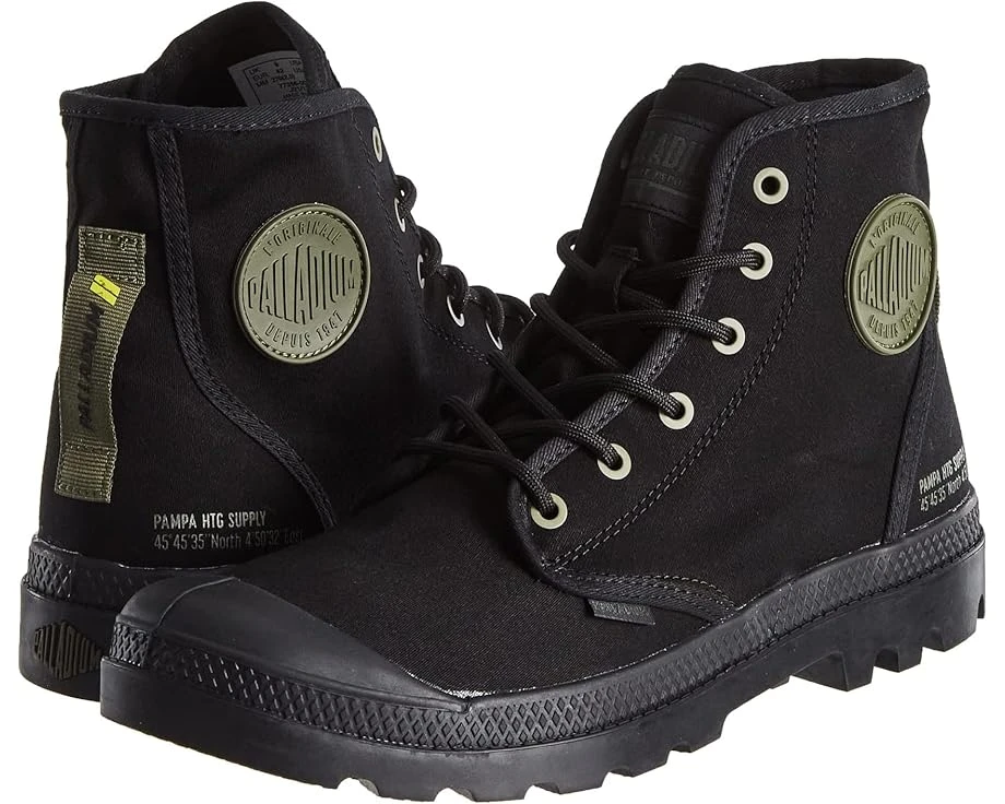 The Palladium® Pampa Hi HTG Supply boots are perfect for every terrain. SKU: #9664886Canvas upper.Textile lining.Textile insole.Ankle length boots.Lace-up closure. Metal eyelets. Round-toe silhouette.Rubber outsole.Imported.Product measurements were taken using size Men’s 7, Women’s 8.5, width Medium. Please note that measurements may vary by size.Weight of footwear is based on a single item, not a pair.Measurements: