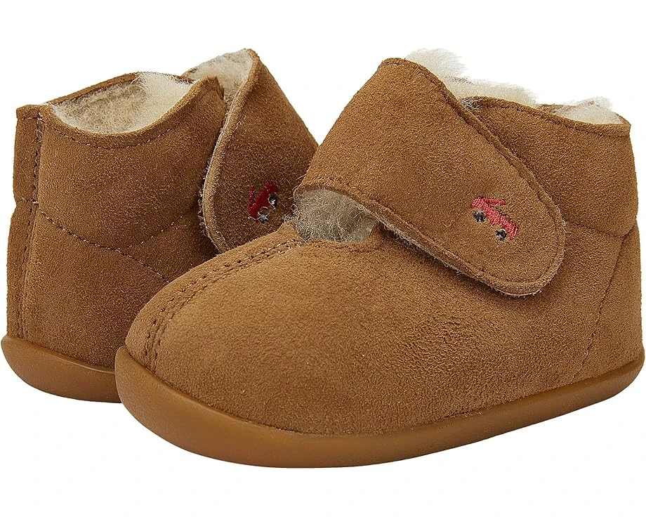 All See Kai Run® shoes are designed to promote healthy foot development in kids.SKU: #9520432Cozy and comfy is what this bootie is all about. Soft, genuine shearling leather upper and genuine shearling wool lining keeps feet warm while the leather sockliner is breathable and wicks away moisture.Awarded the Seal of Acceptance from the American Podiatric Medical Association (APMA).Genuine shearling leather upper and genuine shearling wool lining.Extra-wide adjustable strap makes in-and-out easy.Full rubber outsole provides flexibility, traction, and durability for early steps.Generous toe box provides room for healthy foot development.Awarded the Seal of Acceptance from the American Podiatric Medical Association (APMA).Real lamb shearling dyed from Australia. 100% genuine shearling leather.100% genuine shearling wool lining.100% leather sockliner.100% TPR outsole. Imported. Weight of footwear is based on a single item, not a pair.This summer, See Kai Run pulled a hat trick by taking home three different awards from three very distinguished award organizations. While the methodology was a little different across each platform, the objective was the same; recognize product excellence in the children’s footwear category. See Kai Run has won the Creative Child Awards, Mom’s Choice Award for product excellence, and was named the Cribsie 2020 Favorite Footwear Brand for babies and tots.
