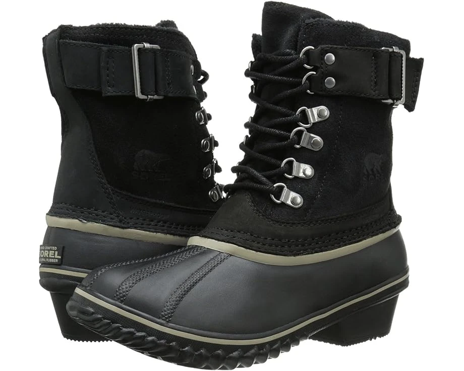 The warm Winter Fancy™ Lace II boot by Sorel™ keeps you feeling secure with its durable lacing system and unbelievably stylish with its leather and rubber construction that is ideal for wintertime fashion! SKU: #9252592Waterproof full grain leather upper.Secure lacing system with D-ring metal hardware. Seam-sealed bootie construction keeps out the wet elements for a drier, more comfortable foot environment. Features both 100g protective insulation and a full fleece lining to keep the cold out in the most frigid temperatures.Microfleece topcover on top of a molded EVA footbed provides added underfoot comfort. Molded EVA footbed with arch support for all-day comfort. Vulcanized rubber midsole for long-lasting support. Insulated waterproof vulcanized light PAC shell with herringbone outsole provides excellent waterproof protection and superior traction on various surfaces. Imported.