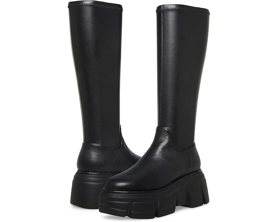 Slay the street style this fall donning the classy and elegant Steve Madden® Tero Boots featuring a knee-high silhouette with a calf-defining fit.SKU: #9852324Synthetic upper.Synthetic and textile lining.Comfort synthetic footbed.Zippered closure for easy entry.Round toe silhouette.Chunky molded platform wedge construction.Durable synthetic outsole.Imported.Measurements: