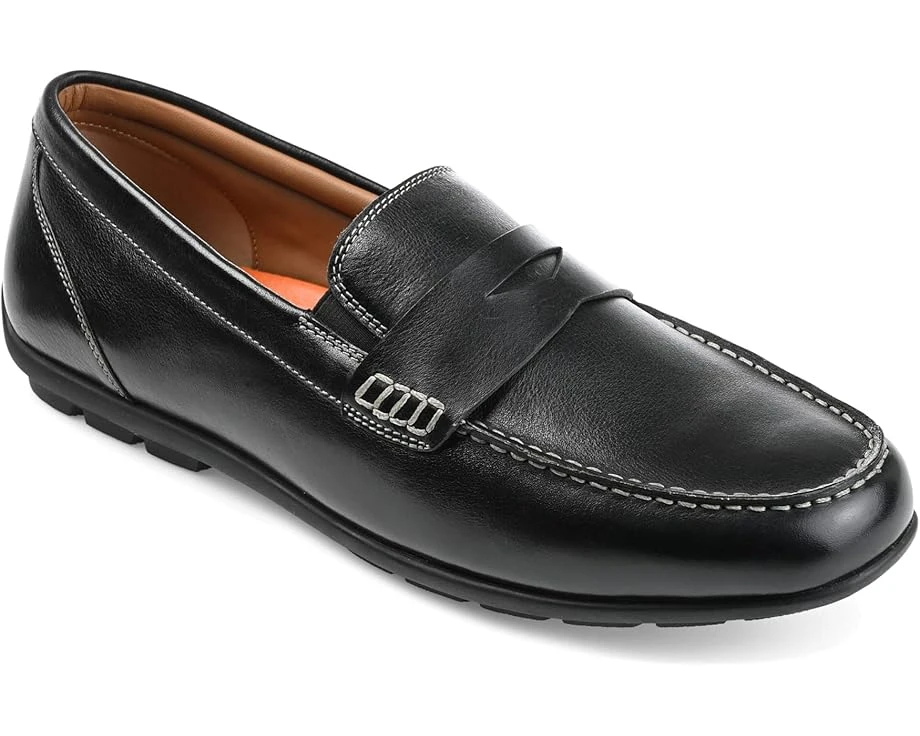 Walk in comfort and style wearing the Thomas & Vineâ„¢ WOODROW that offers a classic look.SKU: #9817128Leather upper and lining.Tru Comfort Foamâ„¢ footbed offers support and all-day comfort.Slip-on style.Round toe.Flat silhouette.Accented strap on the upper with cutout detail.Rubber outsole.Imported.Measurements: