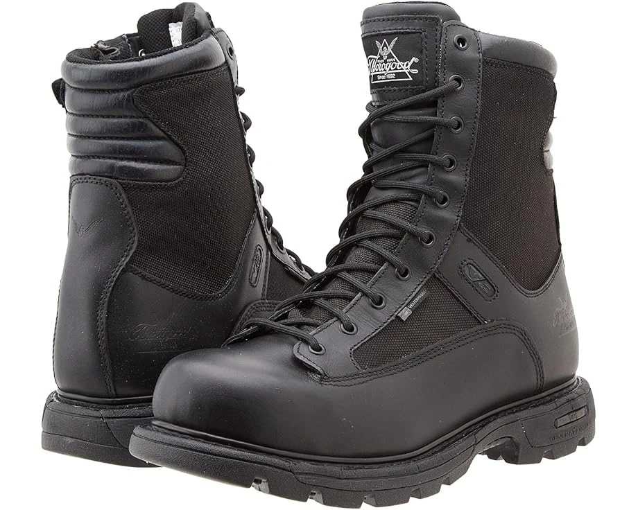 The 8 Inch Trooper Side Zip by Thorogood™ makes the ideal work boot when you need supportive comfort, durable leather, and reliable traction to get you through your work day.SKU: #8383954Style numbers: 834-7991 (Black)Soft toe meets ASTM F2892-18 EH (electrical hazard) safety standards.Hydrostatic Water Test Qap 10.1m.Waterproof tumbled oiled full grain leather upper.Thoro>Dri™ WATERPROOF System keeps out the wet elements for a dry, comfortable foot environment. Thoro>Dri™ waterproof breathable lining/membrane featuring waterproof taped seams that are capable of resisting blood borne pathogens. Traditional lacing and a heavy-duty YKK side zipper with hook-and-loop closure.Spacer mesh lining for superior breathability. PU removable footbed featuring special EVA cushion flex that provides excellent supportive comfort. Goodyear® storm welt construction.Lightweight, compression-molded EVA midsole with impact 300 gel heel insert. Engineered composite shank offers excellent support and stability.Nonmarking Gen-flex² dual-density rubber outsole is oil and slip resistant that meets ASTM F 2913-17 standard, and provides superior flexibility, durability, and comfort.Imported.Product measurements were taken using size 11.5, width D – Medium. Please note that measurements may vary by size.Weight of footwear is based on a single item, not a pair.Measurements: