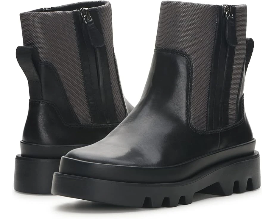 Amp up your styling game by opting for the sleek and vogue Vince Camuto® Kaskona boots. SKU: #9842875Two-tone leather and textile upper. Breathable textile lining with synthetic cushioned footbed. Round toe silhouette. Zippered closure on the side. Synthetic lug outsole ensures maximum stability.