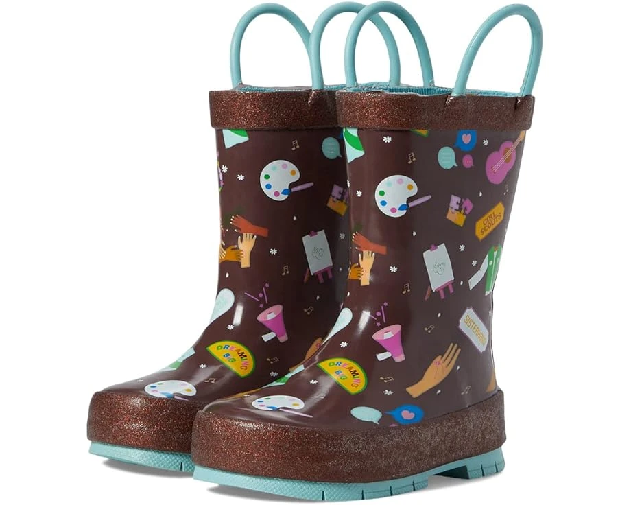 Let your little one enjoy splashing in puddles donning the waterproof Western Chief® Kids Brownie Squad Rain Boot.SKU: #9701068Rubber upper.Breathable textile lining.Removable textile insole.Pull-on style.Pull handles offer an easy on and off.