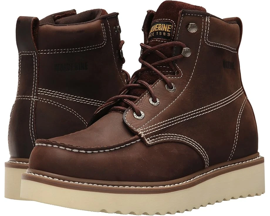 The Wolverine® Loader 6″ Wedge Boot Soft Toe has the ideal comfort and durability that lets you go from the work site to the office with having to change shoes.SKU: #8897754Style number: W10744.Premium leather upper.Lace-up construction. Soft toe work boot with a moc toe construction. Comfortable padded collar. Goodyear® welt construction.Textile interior for a lighter weight construction. Slip resistant outsole meets ASTM F1677-05 standard. Rated Dry .81/Wet .63/Oil .39/Oil & Water .33.Removable full-cushioned footbed provides excellent underfoot comfort. Steel shank for added stability. Polyurethane wedge outsole for long-lasting wearability. Imported.Product measurements were taken using size 11, width D – Medium. Please note that measurements may vary by size.Measurements: